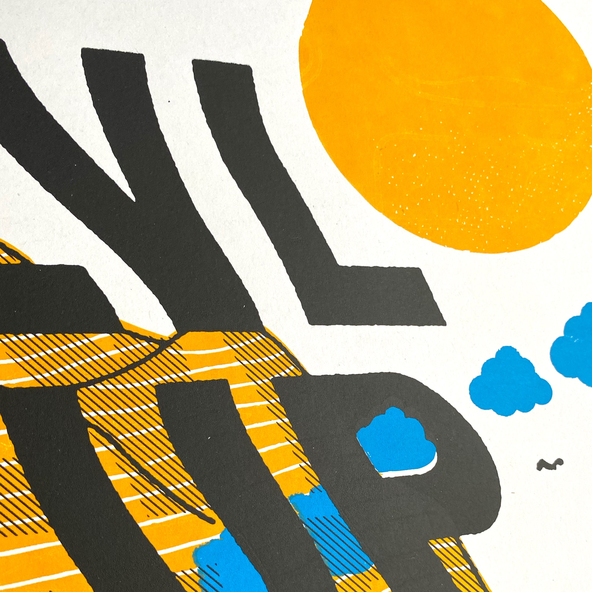 Each print is very slightly different due to the nature of screen printing.
