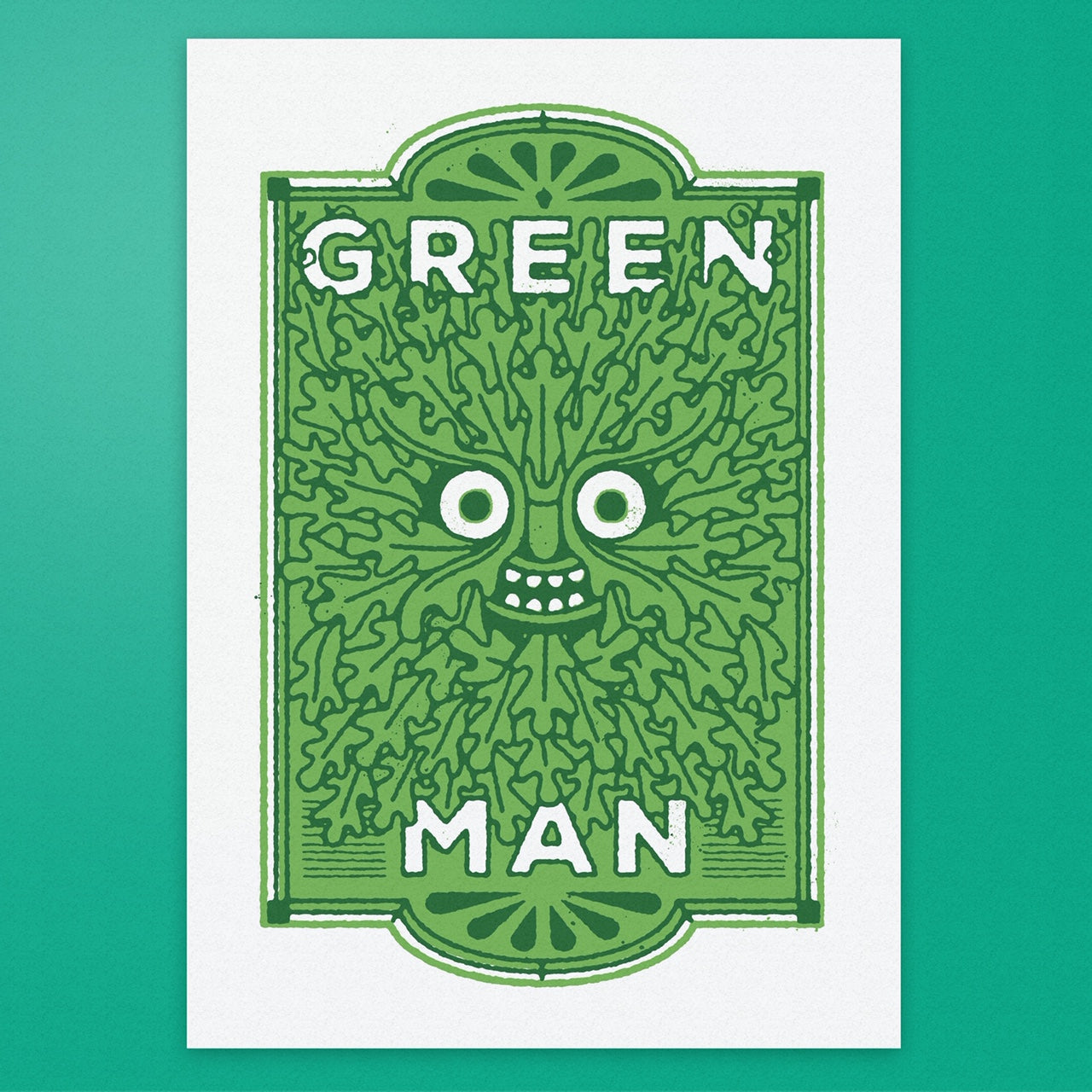 The first of our new print series of popular British pub names and inspired by mythologies surrounding the Green Man.